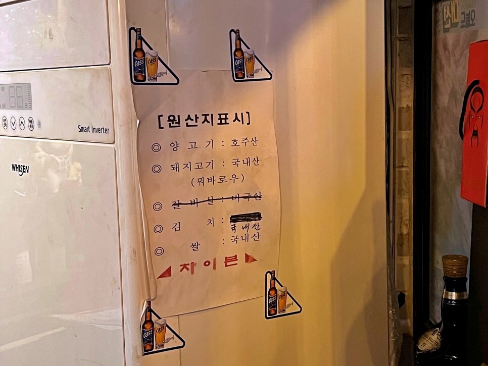 카운터 옆에 원산지 표시판을 찍어왔습니다.
