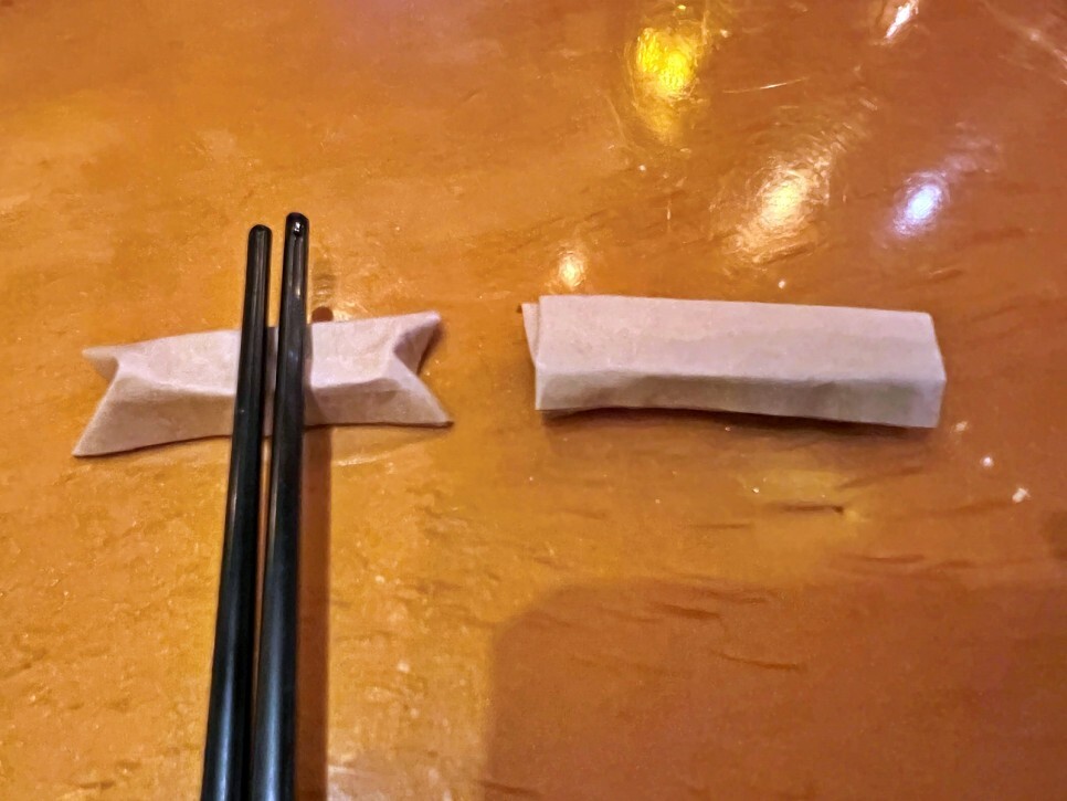 젓가락을 테이블에 그냥 놓기 싫을 때 젓가락 종이를 이용해서 이렇게 거치대를 만들 수도 있습니다.