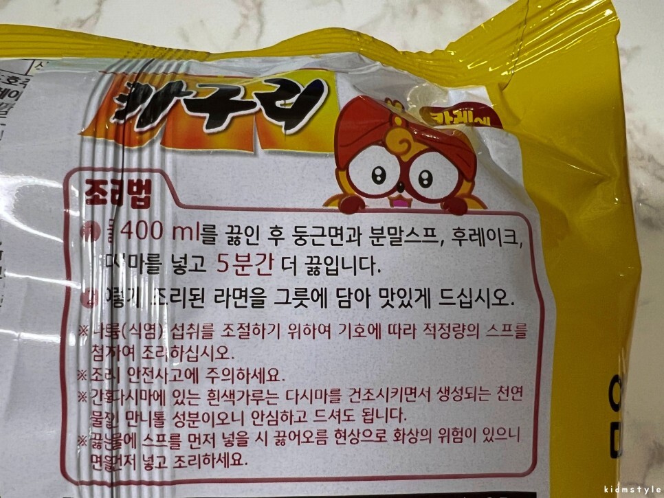 마트에 가서 장을 볼 때 신상 제품을 보면 구입을 하고 싶어진다. 며칠 전 마트에 잠시 들렀을 때 신상 라면이 눈에 들어오더라. 얼리어댑터답게 4개들이 한 봉지를 쿨하게 카트에 담았다. 어떤 맛을 보여줄지 궁금해하며 말이다. 주말이 되어 해장 겸 점심으로 한번 끓여보기로 했다. 구입한 제품은 바로 농심 카구리이다.