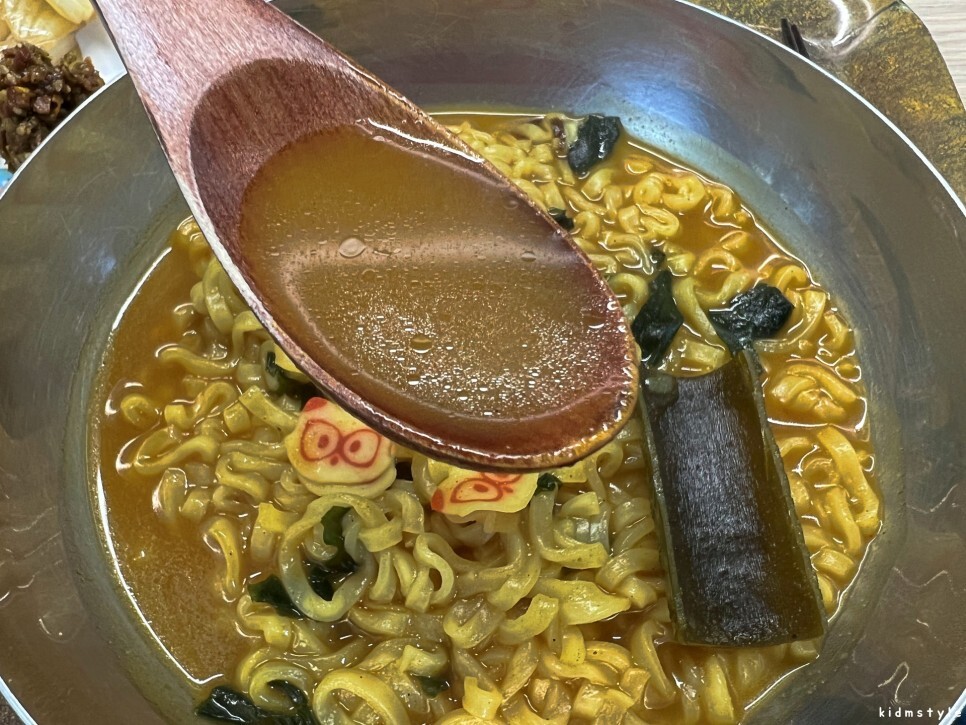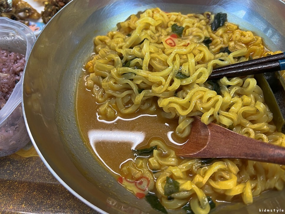 잘 익힌 면은 여전하다. 맛있다. 우리에게 이미 익숙한 너구리 면발이다.