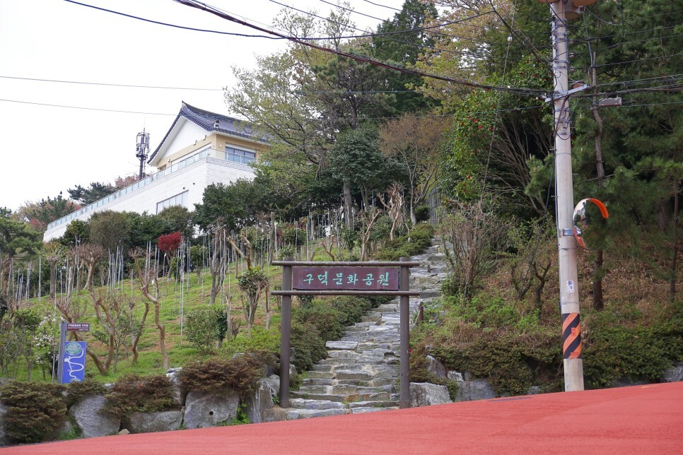 정면에 보이는 계단은 구덕문화공원으로 올라가는 지름길이에요. 저는 도로를 따라 조금만 더 올라가 보기로 합니다.