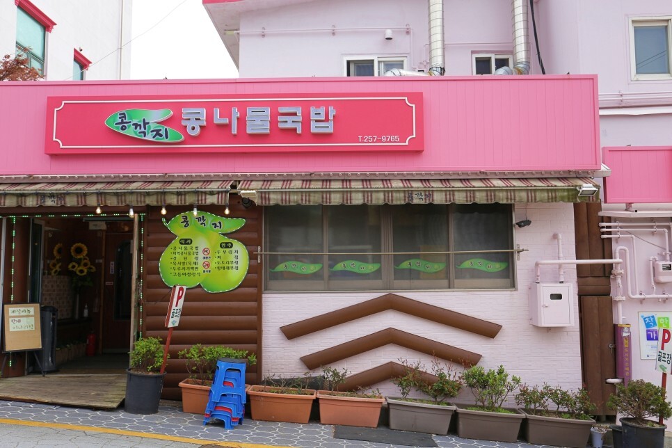 분홍색, 핑크색으로 잘 꾸며진 간판들이 정리된 통일감을 안겨줍니다. 산뜻한 외관 덕분에 한층 더 마을이 활기차 보이네요.