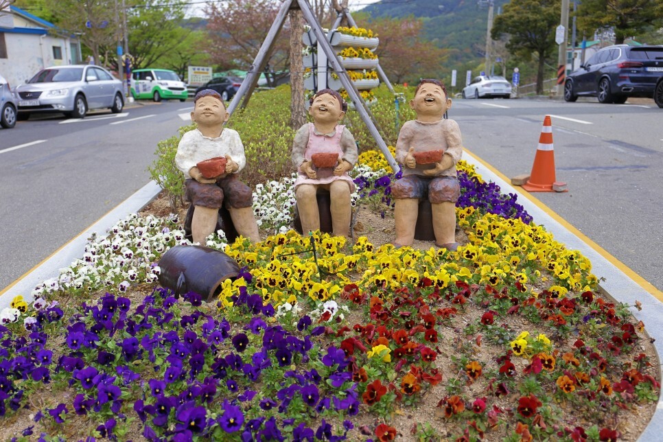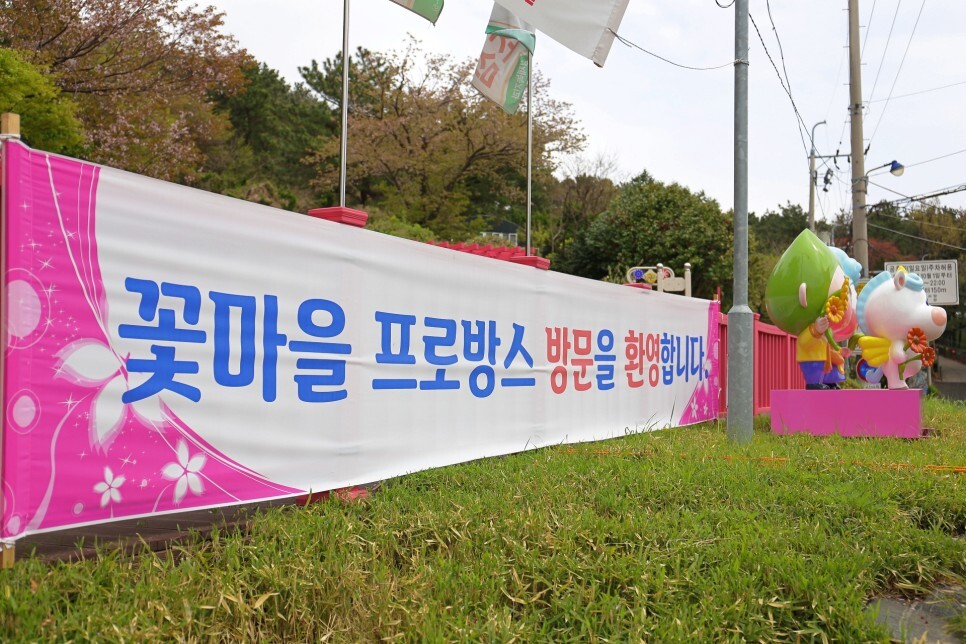 꽃마을답게 중앙 분리대에 꽃을 잘 심어놓았네요. 꽃을 바라보니 봄이 왔음을 실감합니다.