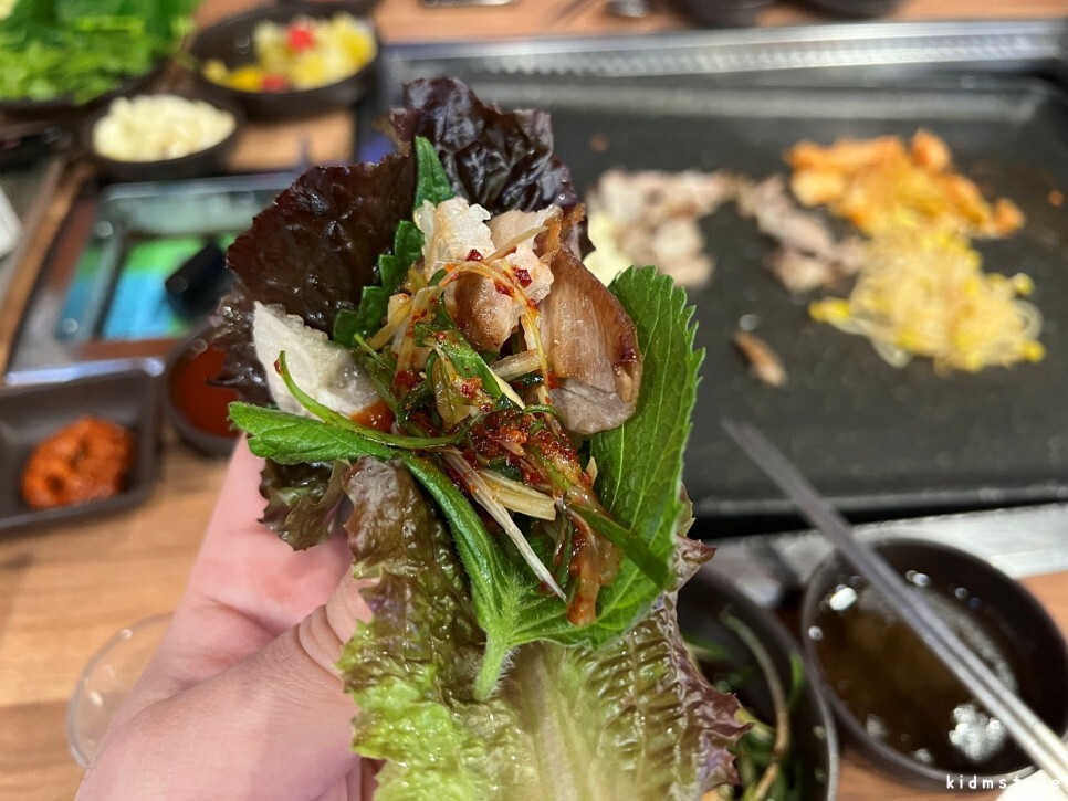 본인은 집게 마스터이다. 열심히 구워서 한 쌈 싸서 맛보면 꿀맛이다. 맛있다.