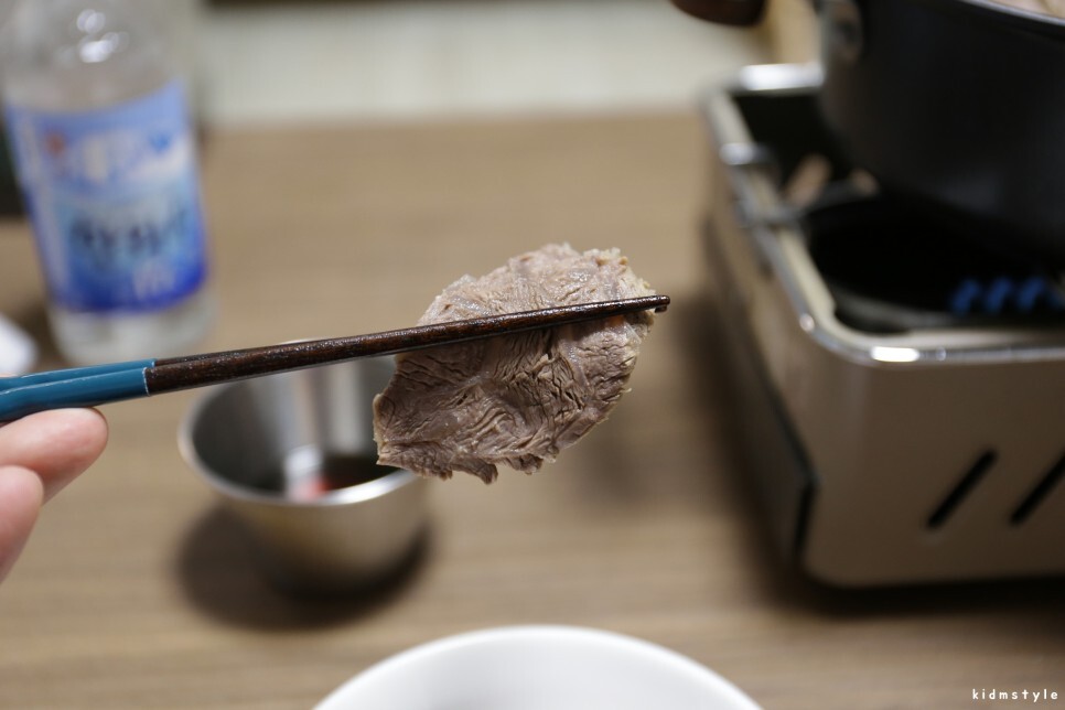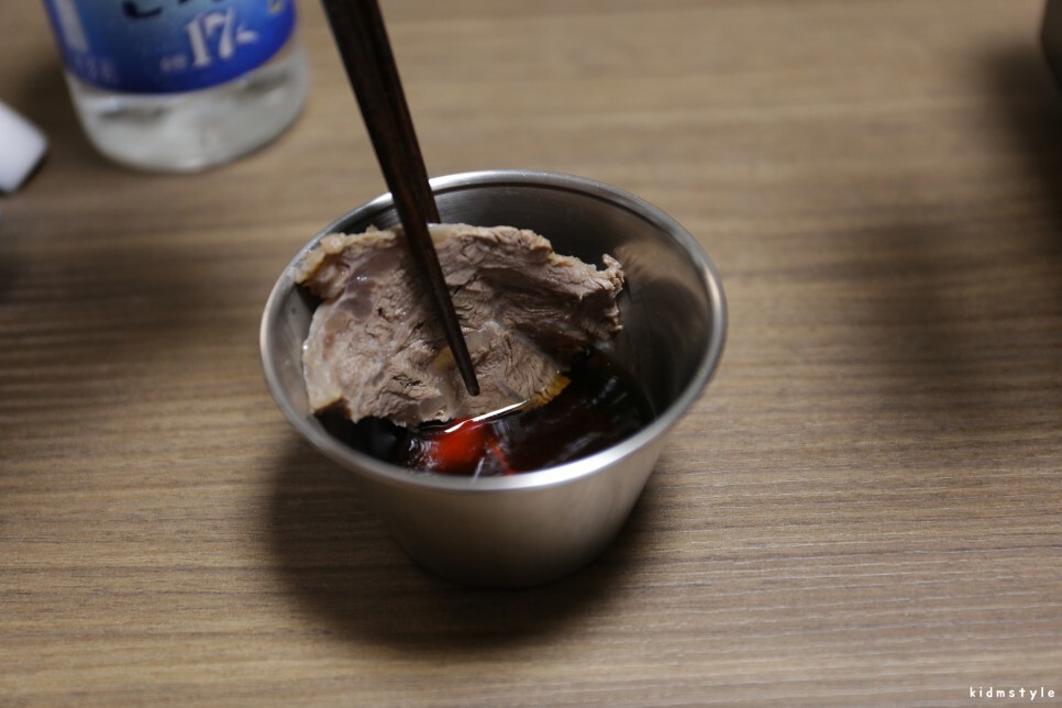 아무것도 찍지 않고 맛본다. 아주 부드럽다. 아롱사태가 이렇게 부드러웠던가? 내가 아는 그 사태살이 맞는가?