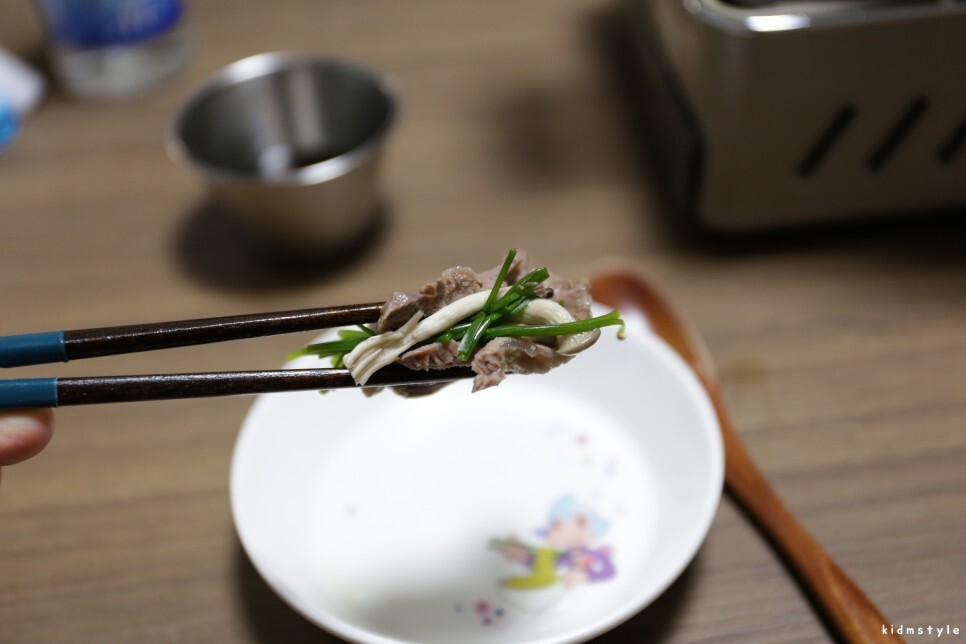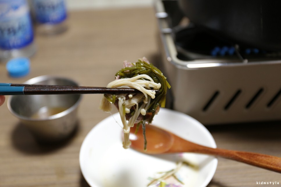 그리고 푹 익은 팽이버섯, 부추를 가득 집어서 맛본다. 맛 표현은 진짜 더 이상 사치이다.