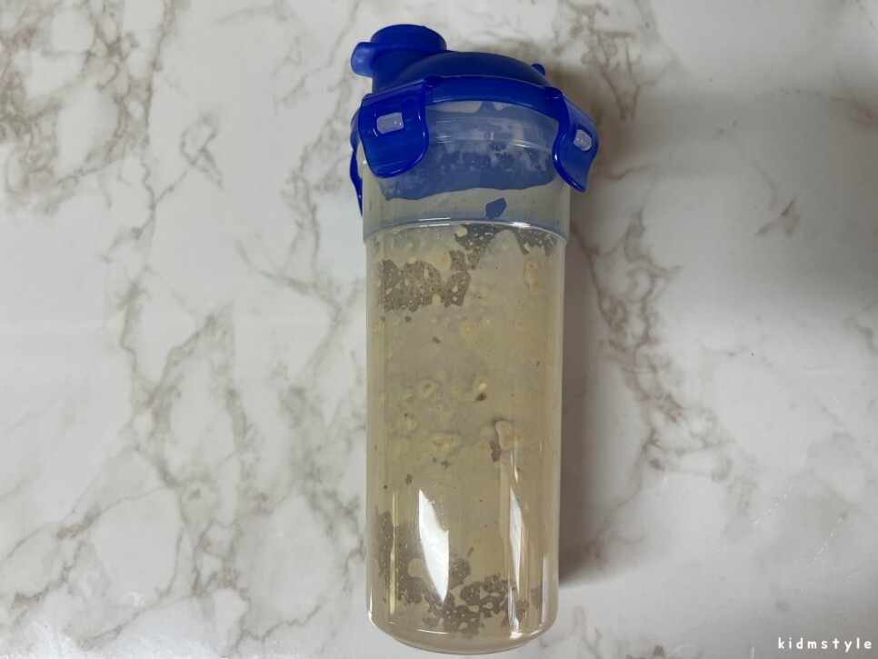 4. 내용물이 아래로 떨어지면 잘 흔들어서 먹으면 된다.