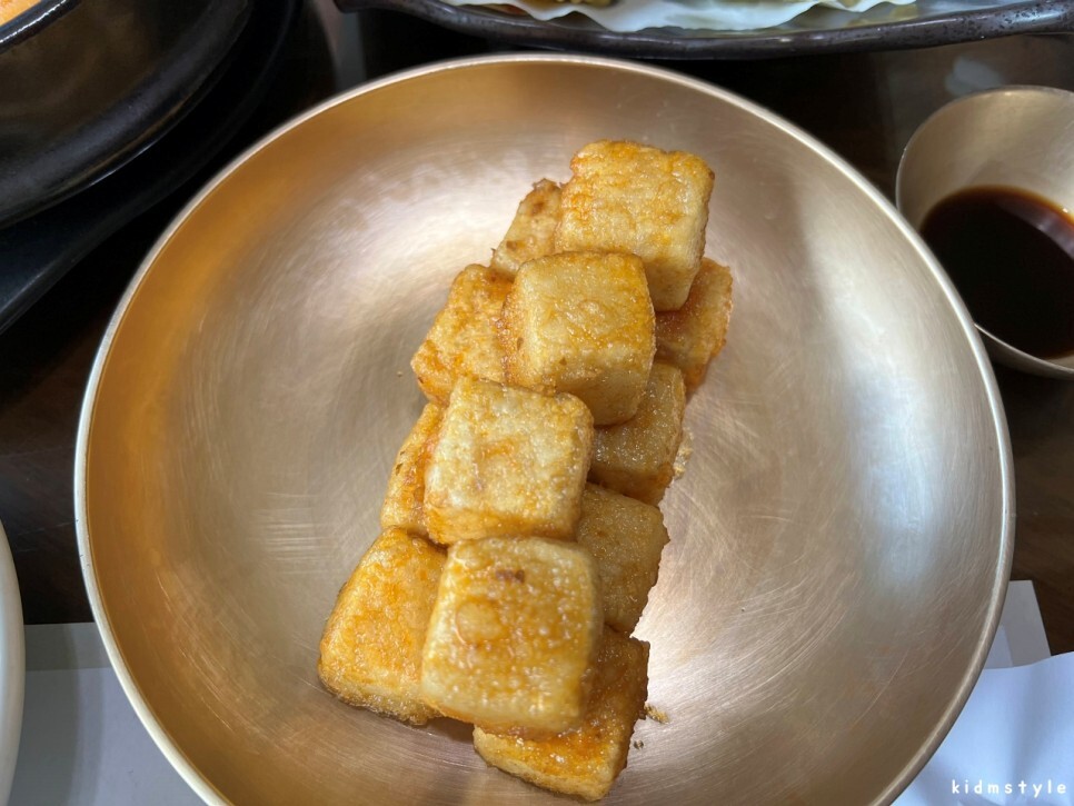 맛을 보니 말 그대로 겉바속촉이다. 한입 해보니 바삭하면서도 두부 본연의 식감을 느낄 수가 있어서 좋더라.