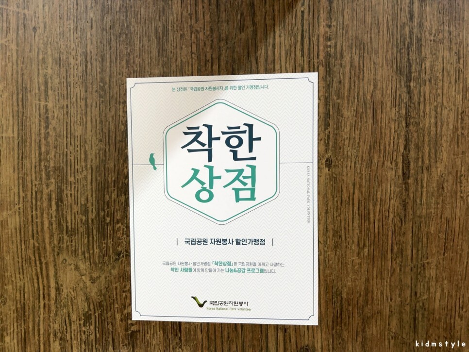 그리고 국립공원 자원봉사 할인 가맹점, 착한상점 인상적이다.