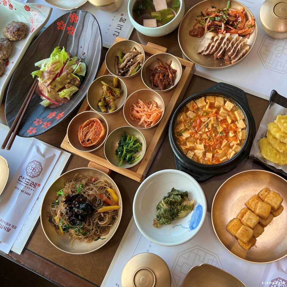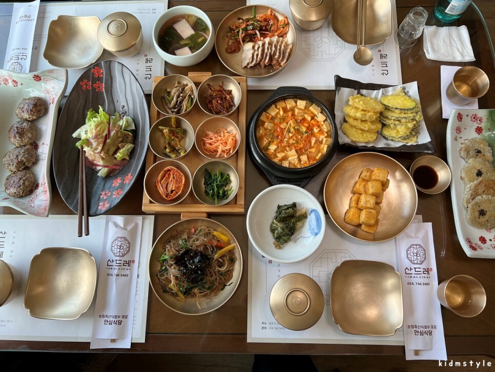 오늘 이른 점심은 '산드레'라는 한정식집이다. 이 집은 보문단지를 지나 불국사를 가는 길목에 있는 식당이다. 보문단지를 지나면 떡갈비 맛집, 한정식 맛집 등 다양한 맛집들이 가는 길에 눈에 띈다.