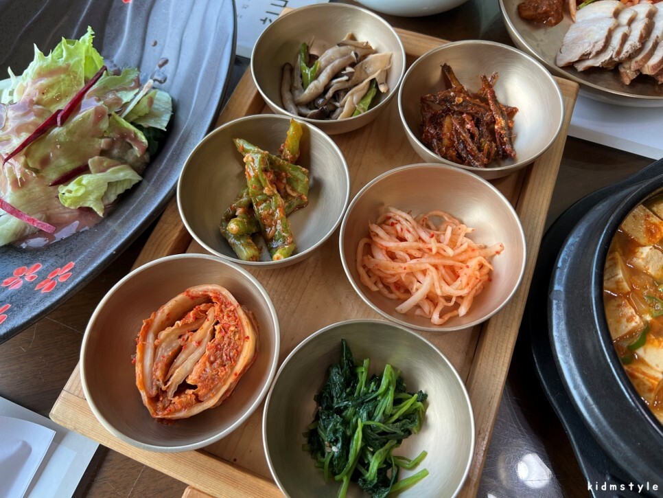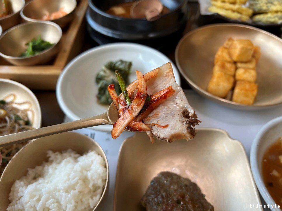 잘 익은 김치, 고추 무침, 버섯볶음, 고추장 멸치볶음, 무생채, 미나리 무침까지 좋다. 전체적으로 간이 세지 않고 무난하다. 남녀노소 즐기기에 참 괜찮은 반찬들이다. 그 말인즉슨, 호불호가 없는 음식들이라는 이야기이다.