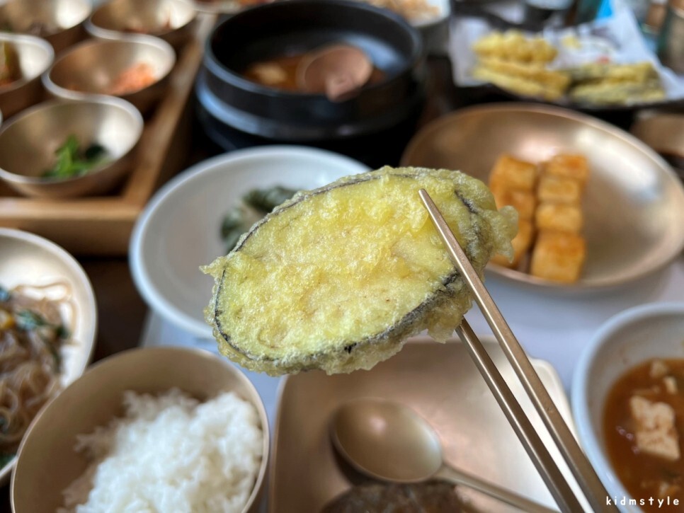 필자는 가지를 정말 좋아한다. 가지 튀김 참 맛있다. 가지와 튀김옷이 따로 놀지 않아서 좋다. 가지가 가지고 있는 육즙을 잘 유지하는 느낌이다.