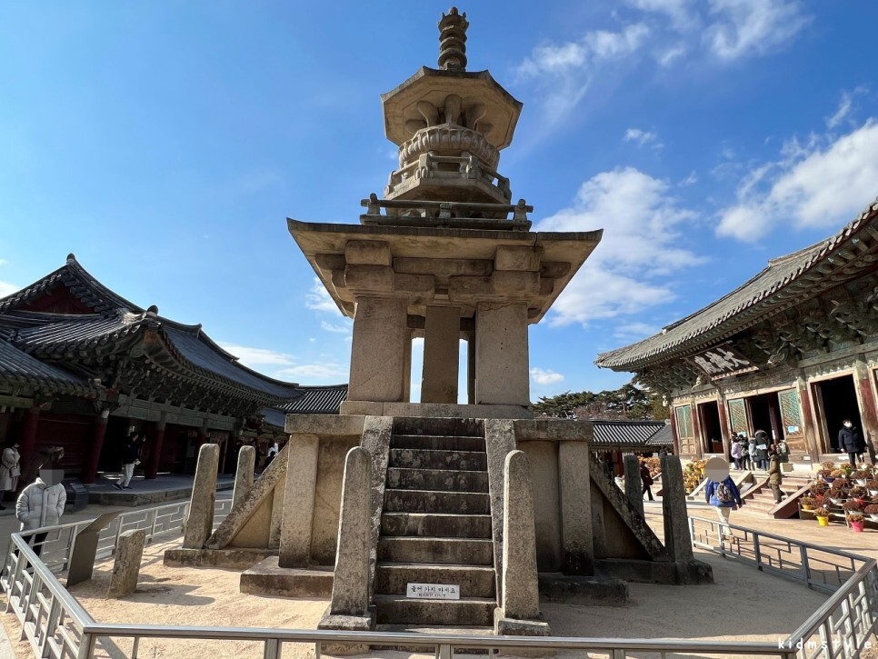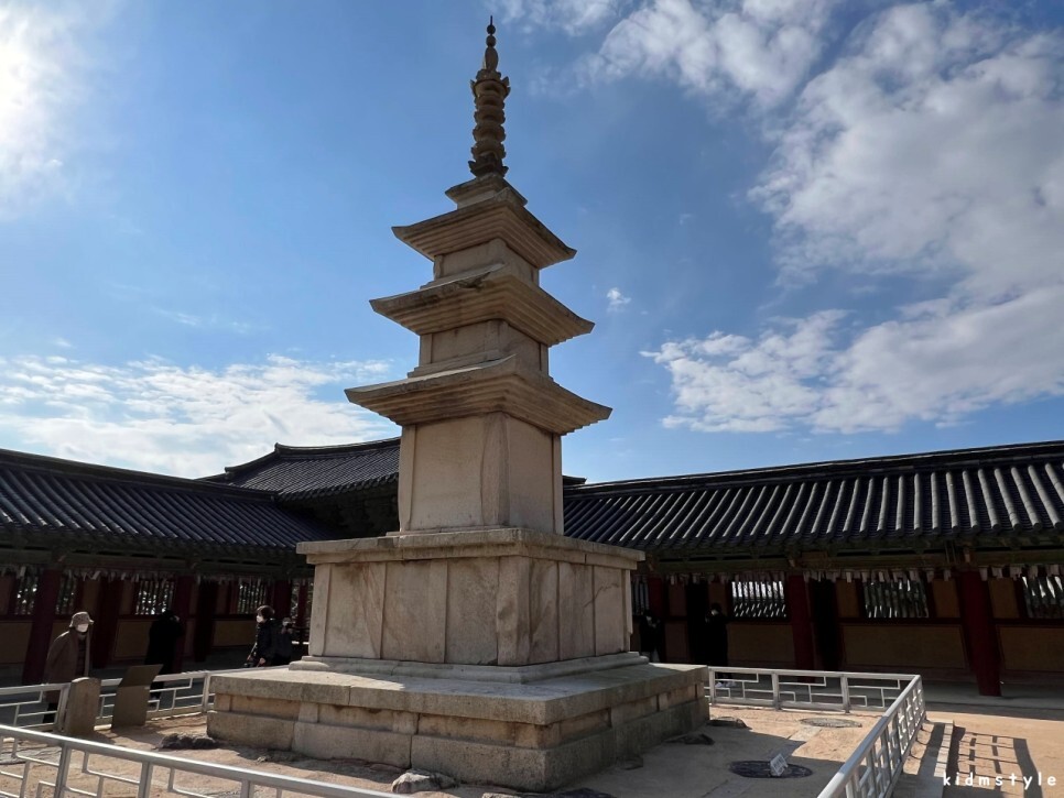 몇 년 전 가족과 함께 불국사에 왔을 때 온전한 석가탑을 볼 수 없었다. 공사 중이었다. 궁금해서 찾아보니 2010년 정기 안전점검 때 균열 등 문제가 발생되어 2011년 5월부터 2016년에 그 공사가 완료되었다고 한다.