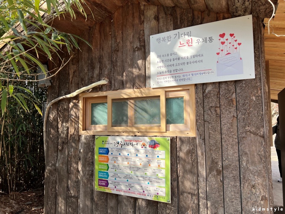 느린 우체통, 그리고 경주 시티투어 안내가 눈에 들어온다. 다음에는 기차나 버스를 타고 경주에 와서 시티투어를 타보고 싶다. 대중교통을 타고 떠나는 여행이 뭔가 진짜 여행 같다. 나만 그런가?