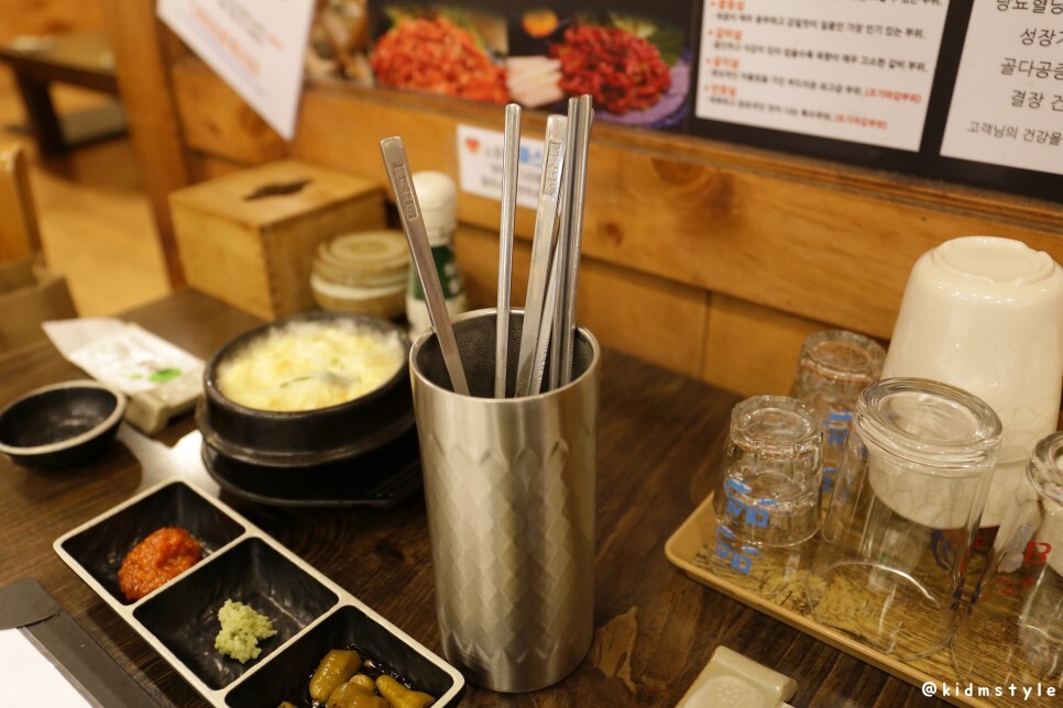 수저 통이 나왔는데 뜨거운 물에 담아져 나온다. 그 자체로 소독이 확실하게 된다. 안심식당이라는 타이틀이 전혀 무색하지 않은 곳이다.