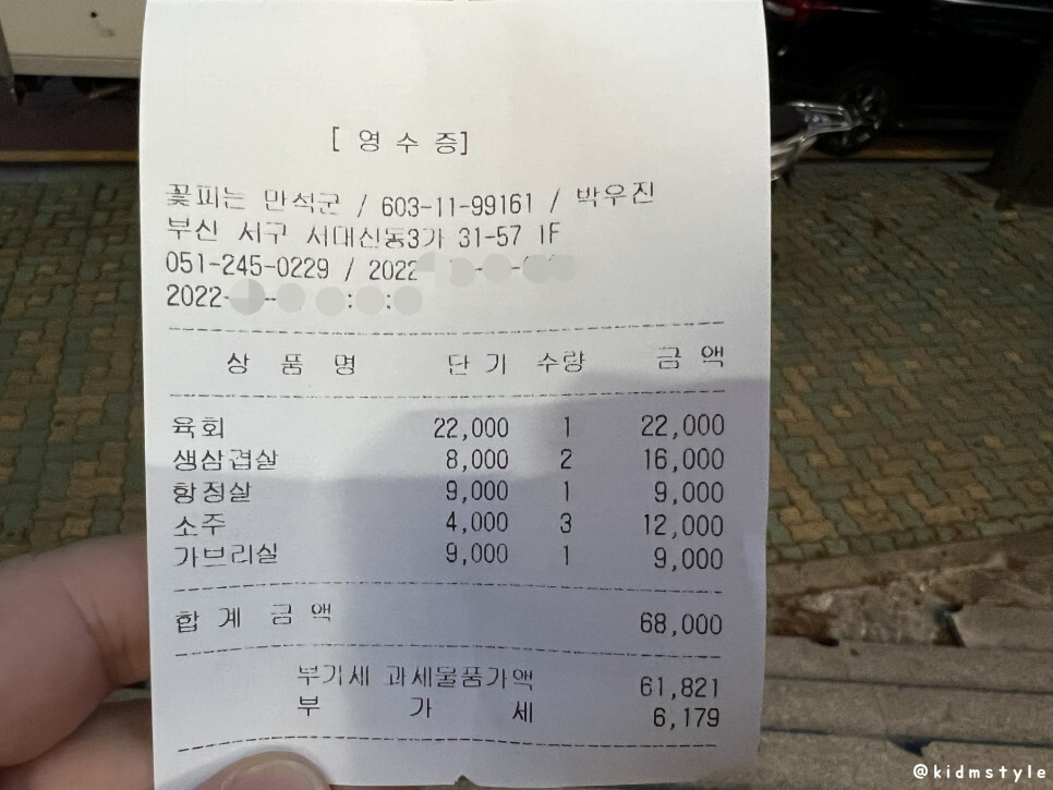 맛있게 맛본 영수증이다.