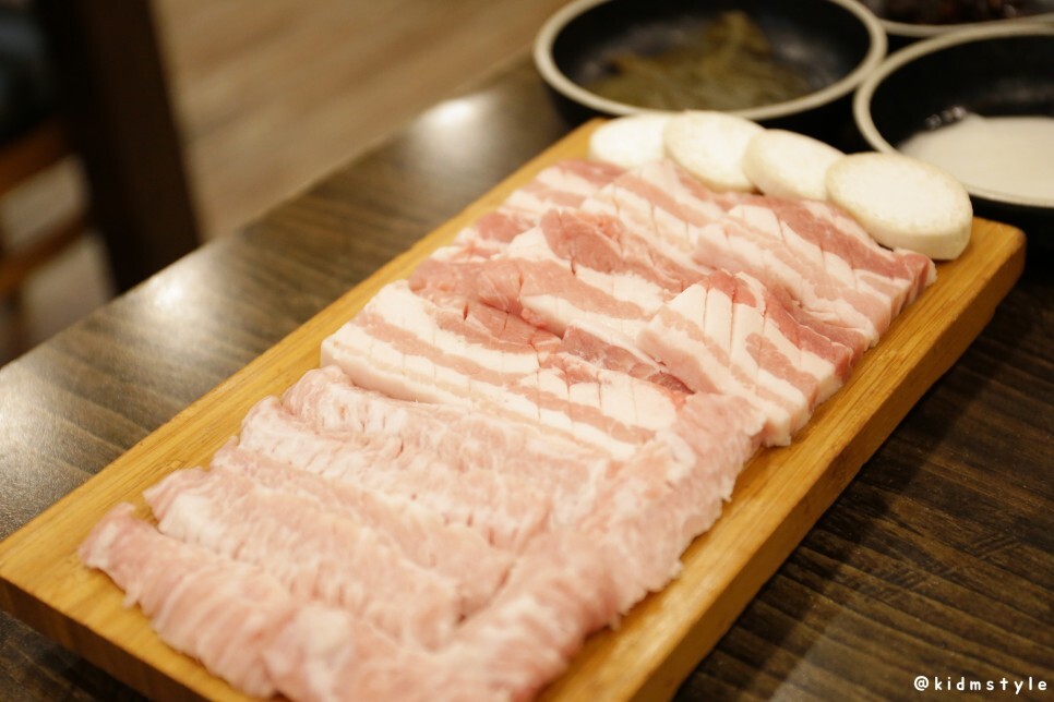 그리고 이집 고기의 특징이 있다. 바로 워터에이징이다. 진공상태의 고기를 2도 이하의 물속에서 보관하며 외부의 온도 변화를 차단하고 중력으로 인한 육즙 손실을 막아 암소 한우는 504시간, 암퇘지 한돈은 168시간을 숙성한다고. 그 풍미가 상당한 숙성 방법이다. 오늘은 한돈을 주문했지만 다음에는 한우를 맛보고 싶어진다. 군침도네.