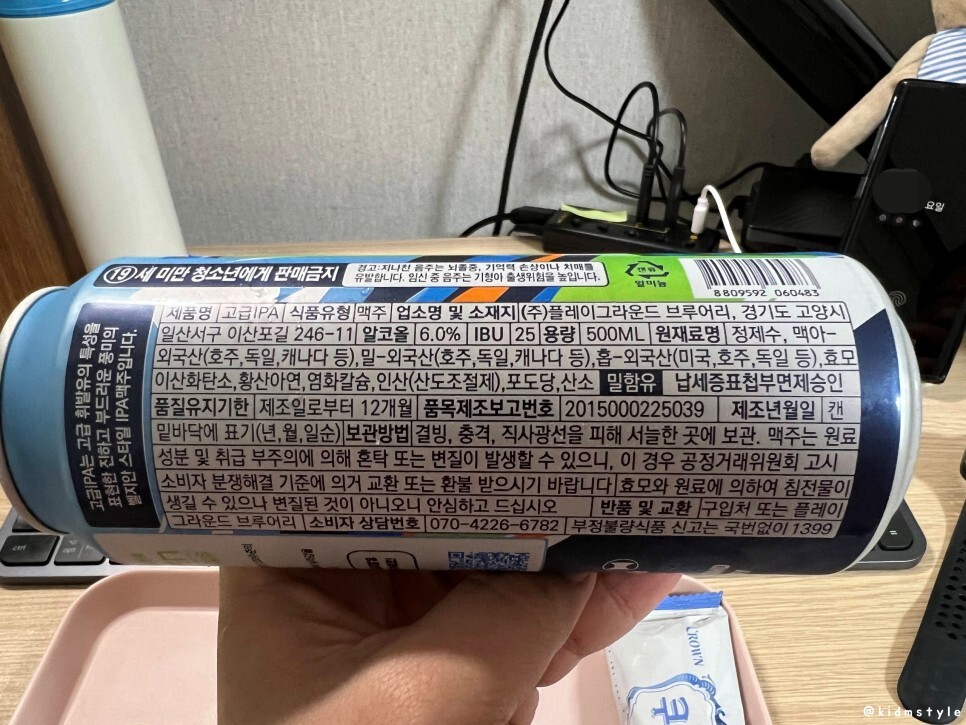 맥주는 플레이그라운드 브루어리라는 곳에서 제조했다. 원재료 등을 참고하기 바란다.