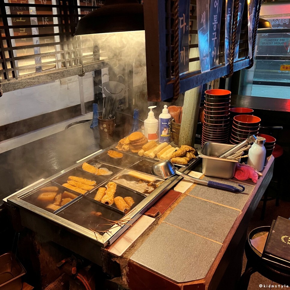 입구에 들어서면 가운데에 오뎅바가 보인다. 이곳에 둘러앉아 맛볼 수 있다.