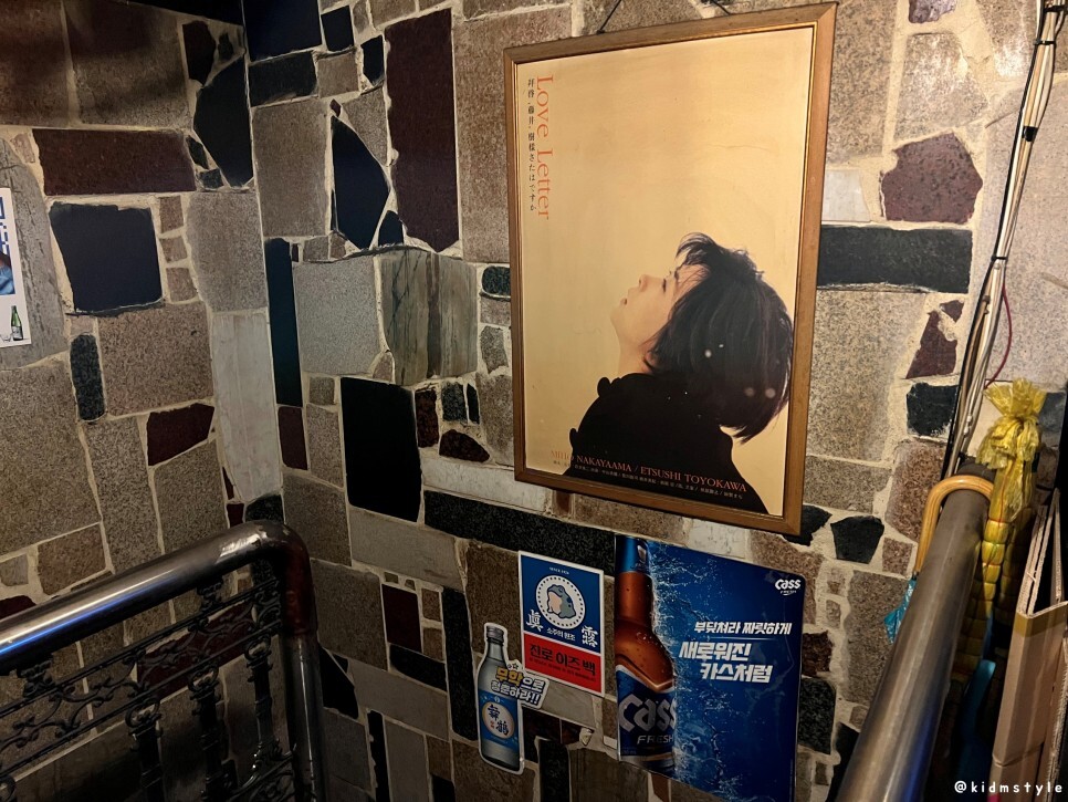 1층으로 내려가는 계단 한쪽에 반가운 영화 포스터가 걸려있다. 1999년 개봉한 나카야마 미호 주연의 '러브레터'이다. 오래 기억에 남는 멜로 영화를 좋아한다면 이 영화를 꼭 한번 보는 것을 추천한다.