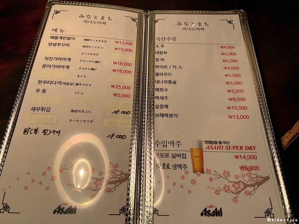 해운대 미나미가 본점이고 미나미 남포점 이곳은 분점이다. 미나미 みなみ는 일본어로 남쪽이라는 뜻이다. 예전에 해운대 본점에서도 참 많이 마셨던 기억이 난다.