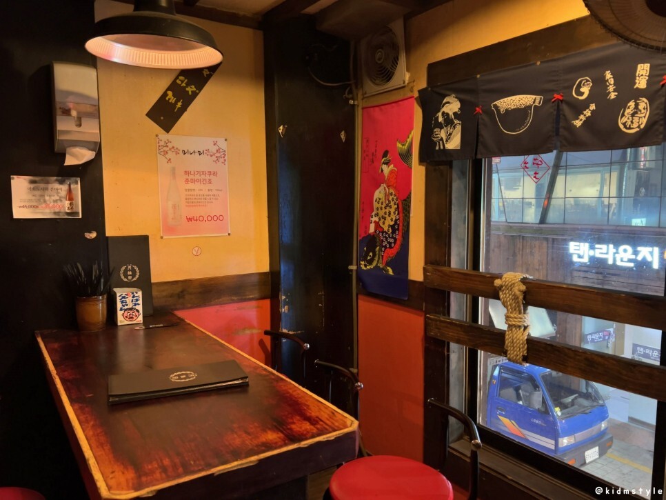 오래된 가게이다. 테이블을 보면 알 수 있다.
