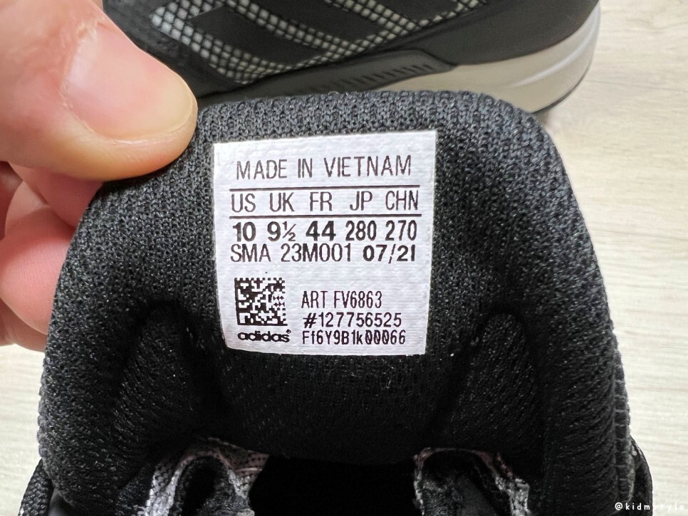 베트남 공장에서 만든 제품이다. 평소 아디다스 제품을 275 사이즈로 구입하는데 테렉스는 280으로 구입했다. 발볼이 좁다는 후기도 많고 트레킹, 등산을 갈 때 등산양말을 신기 위해서 조금 여유 있게 골랐다.