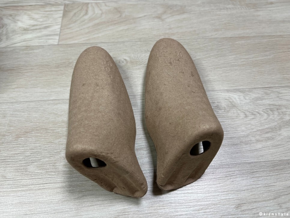 신발 안쪽에는 신발 모양을 잡아주는 종이로 된 단단한 틀이 들어가 있다.