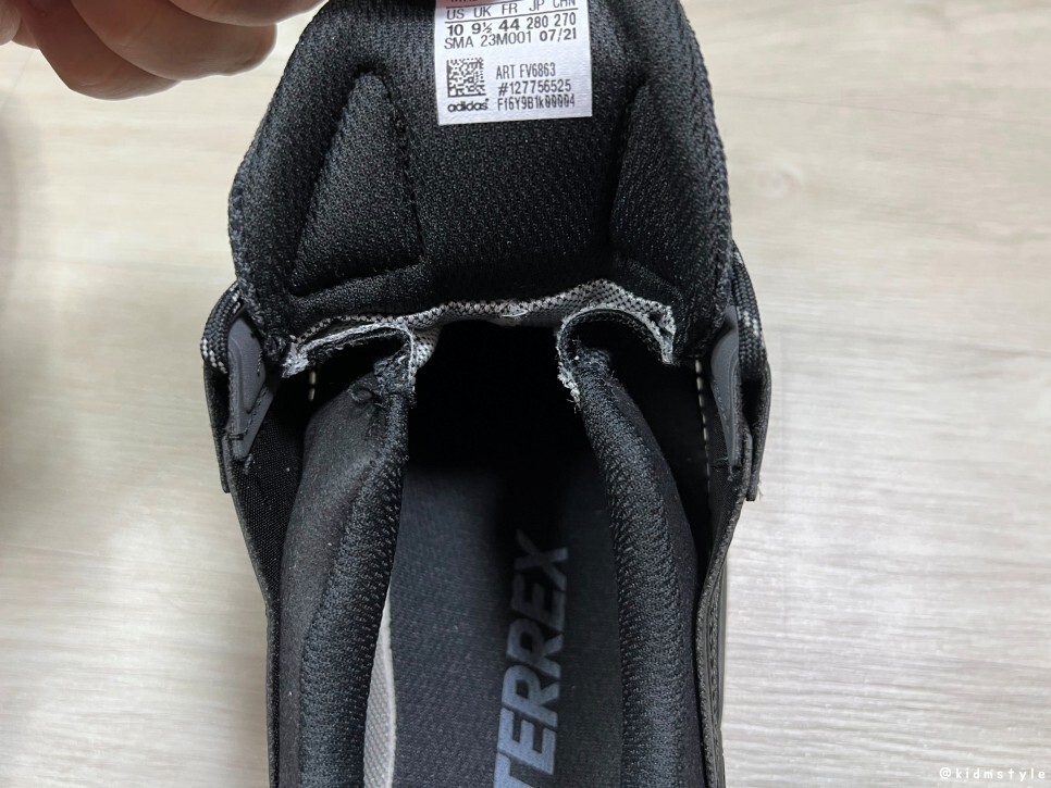 아디다스 테렉스 terrex 제품이다. 일전에 구입했다가 처분했던 울트라부스트 21의 복숭아뼈 부분 문제를 겪은 이후로 민감한 편인데 이 신발은 꽤 오래 신어봐도 특별히 아프거나 하지 않더라.