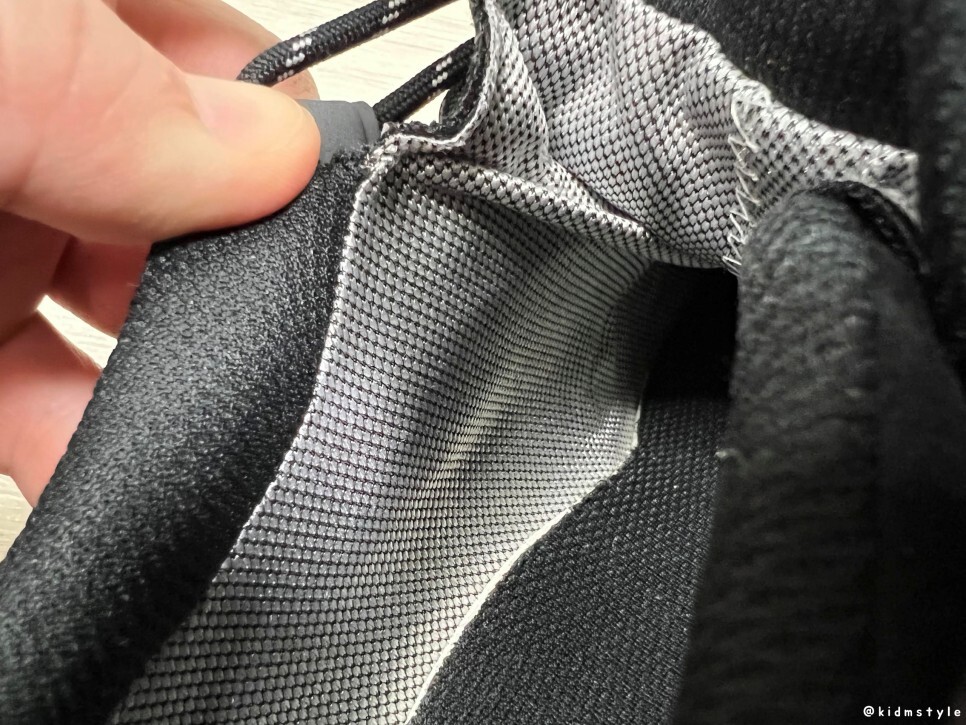 안쪽의 마감은 이렇게 되어 있다. 눈에 보이는 마감 안쪽에 고어텍스 멤브레인이 둘러져 있을 것이다.