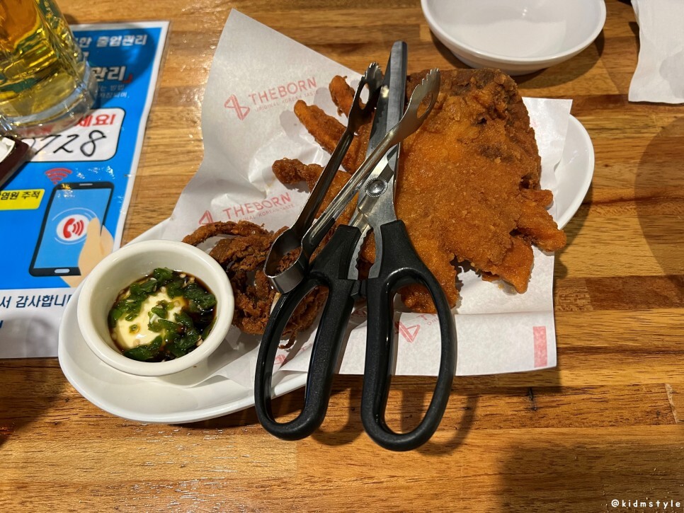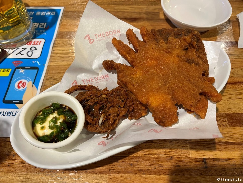 안주는 정말 좋아하는 통오징어 튀김이다. 오징어 수급이 잘 안될 때는 주문이 어려운 안주이다. 평소 오징어를 좋아하기에 늘 안주를 고민할 때 후보에 들어가는 메뉴이다.