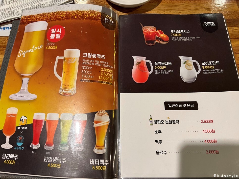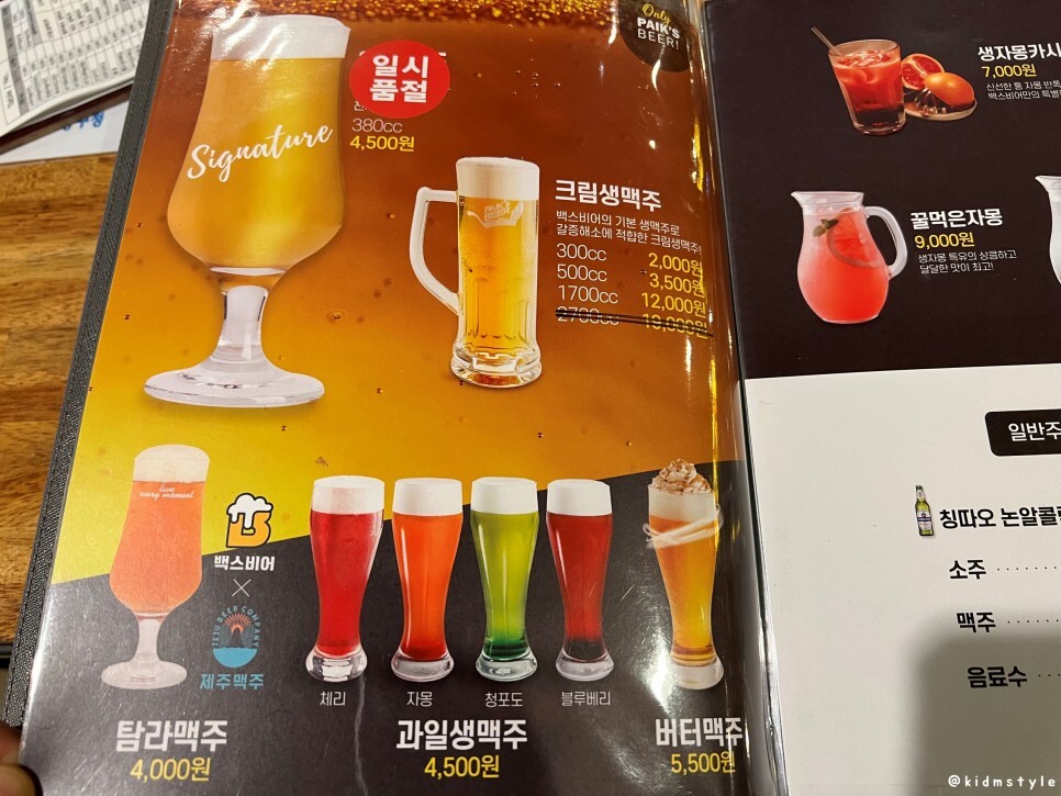 왼쪽은 내가 주문한 탐라맥주, 오른쪽은 생맥주 500cc