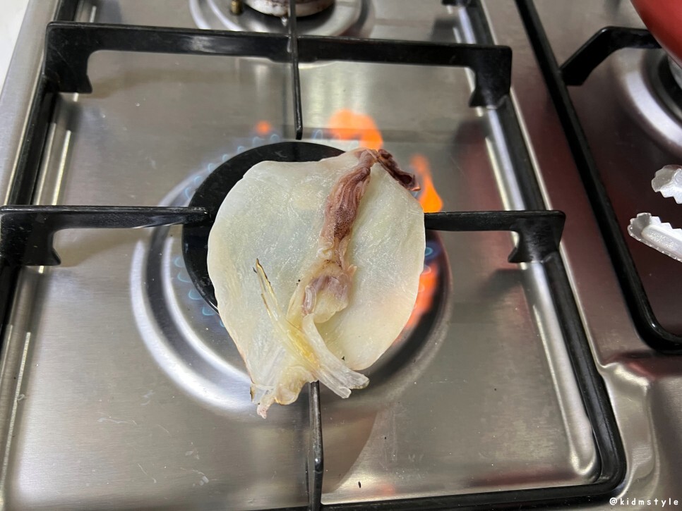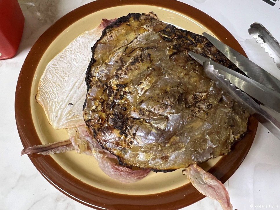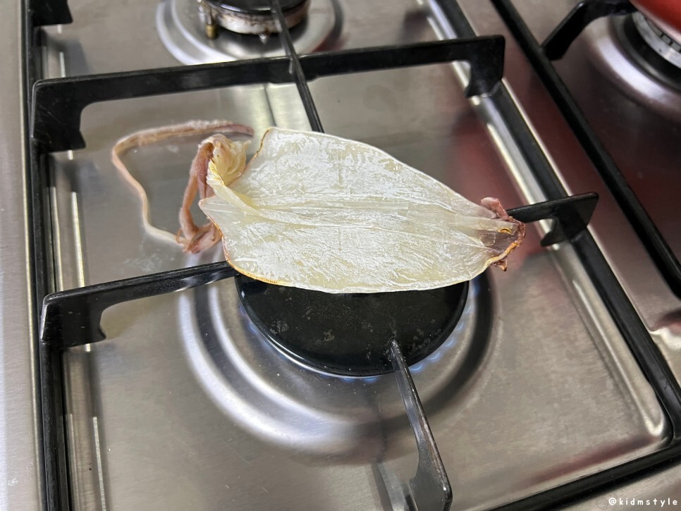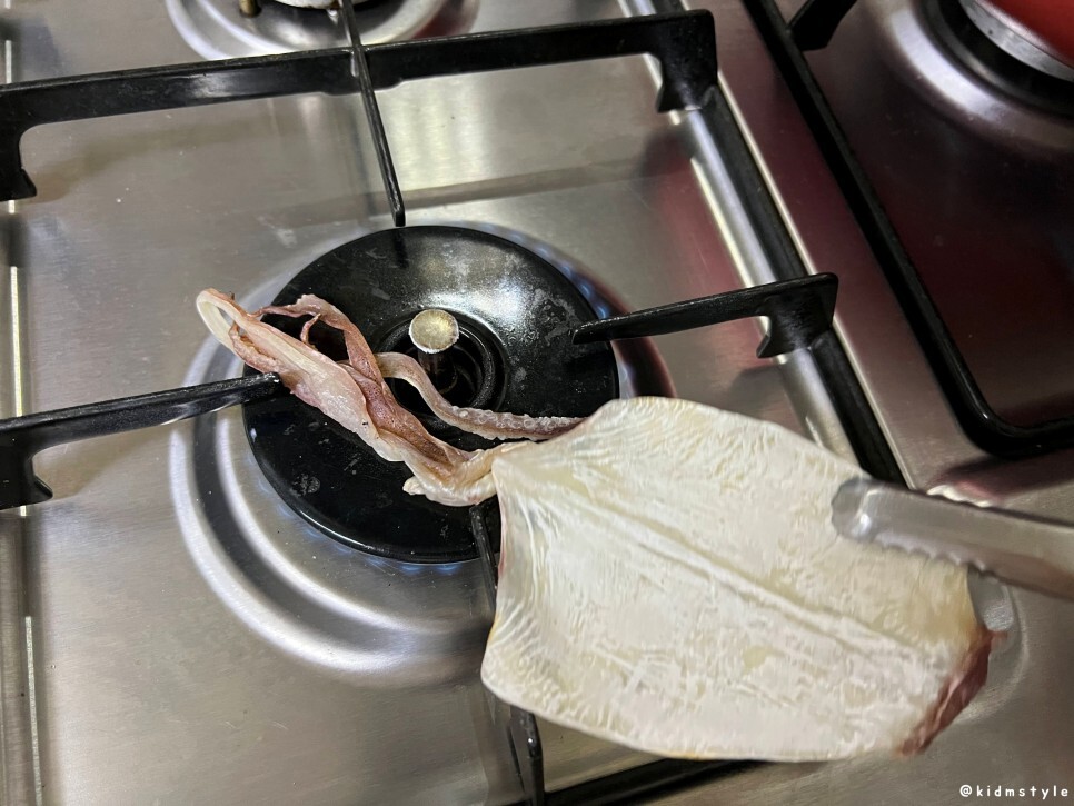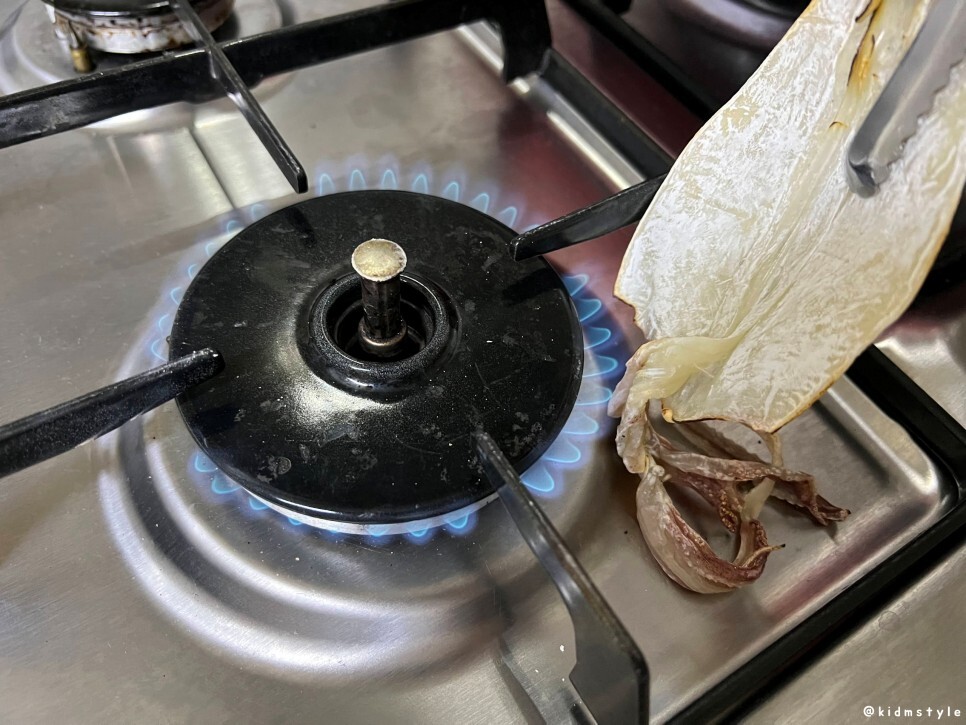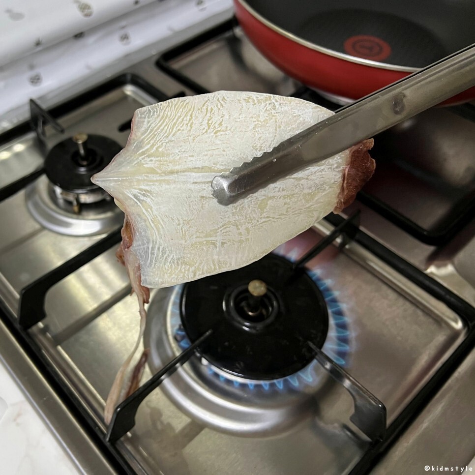 나는 집게 마스터이다. 가스불에 한치, 쥐포 굽는 것 역시 잘한다. 역시 건어물은 가스불에 구워야 제맛.