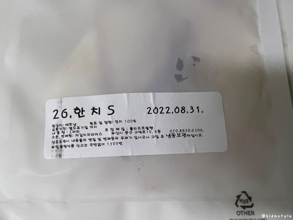 이어서 한치의 원재료 등 정보 참고