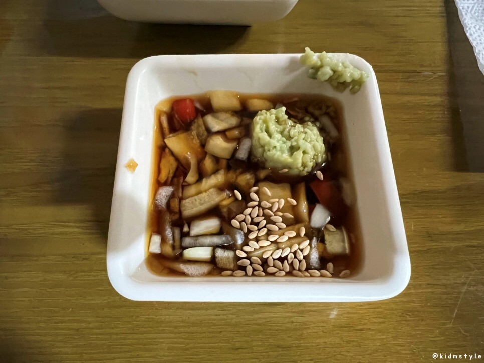 특제 양념 소스가 나온다. 와사비 가득 함께. 메인메뉴가 나올 시간이 다가온다는 뜻이다.