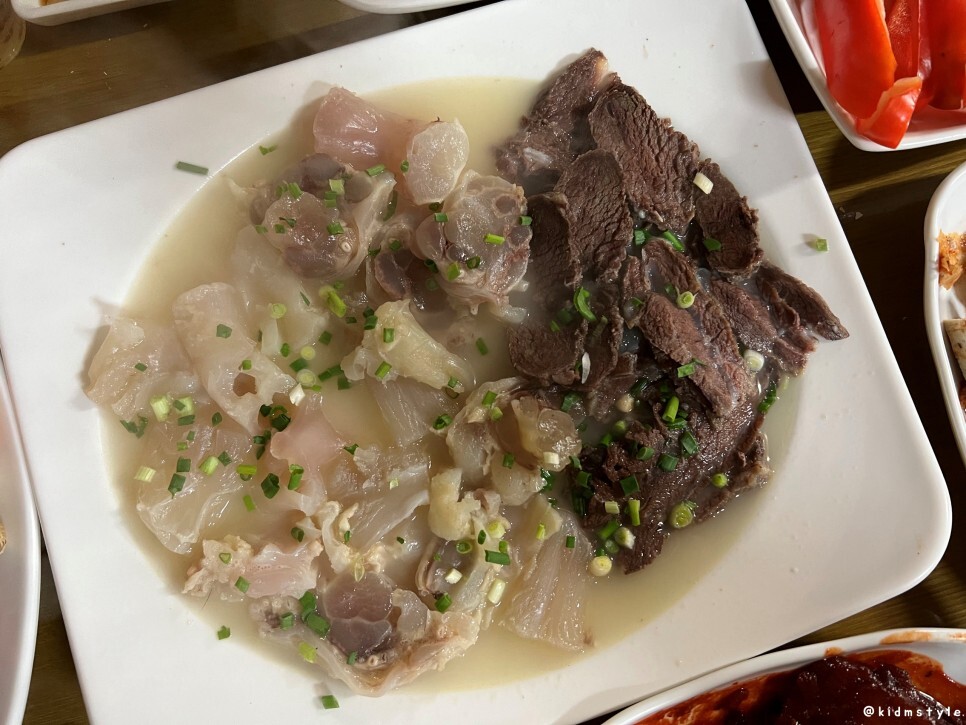 이것이 바로 수육, 스지 반반. 군침 팍팍. 소머리 수육과 스지, 그리고 도가니가 한가득이다. 이것이 25,000원이다. 가성비 참 좋다. 보다시피 양이 제법 많다. 둘이 먹기에 꽤 많다.
