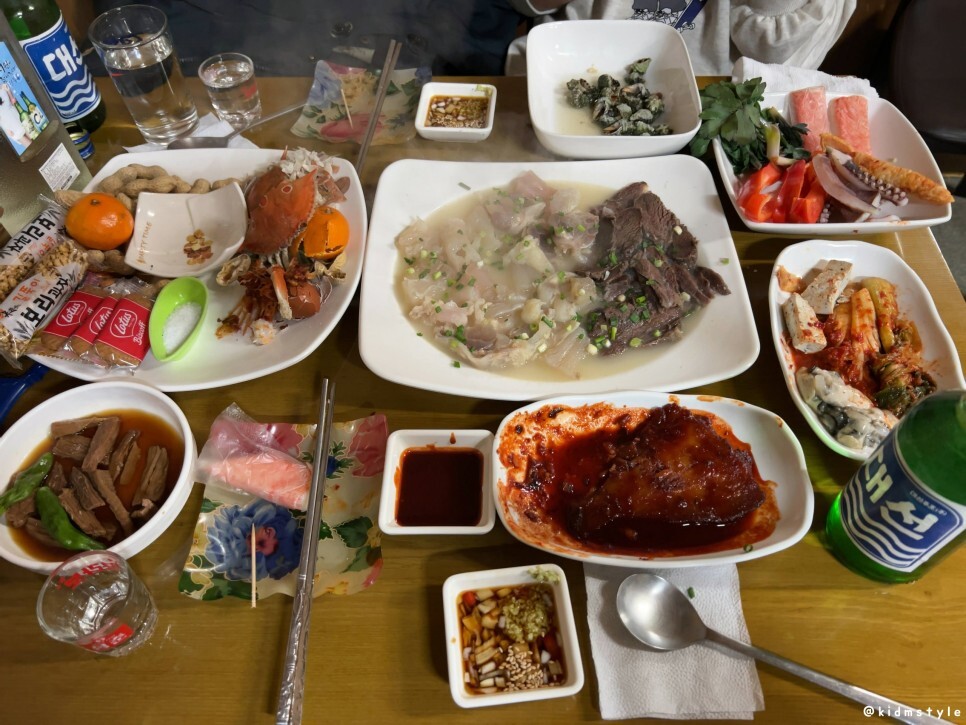 제철이라 굴이 싱싱하고 알이 좋다. 굴과 파김치를 싸서 맛본다. 입안에 바다의 향이 한가득 펼쳐진다. 소주 한 잔이 그냥 휙 넘어가네.