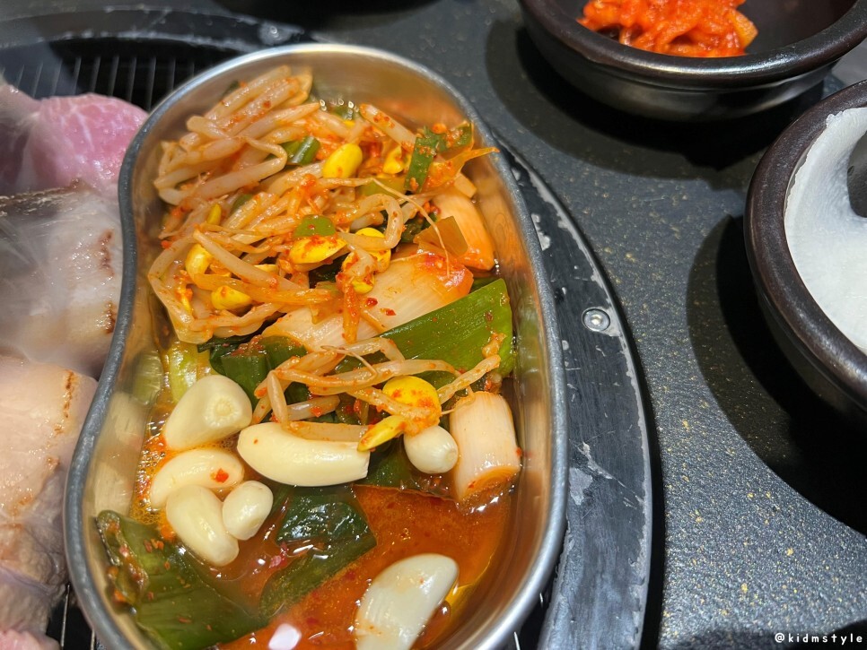 콩나물과 대파 김치는 은은하게 구워 먹으면 된다.