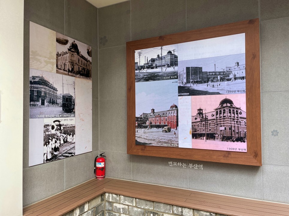부산역의 역사에 대한 사진도 볼 수 있네요. 1910년 중앙동에 준공되어 영업을 하던 부산역이 1953년 부산역전 대화재로 전소되면서 현 위치로 이전하게 되었습니다.