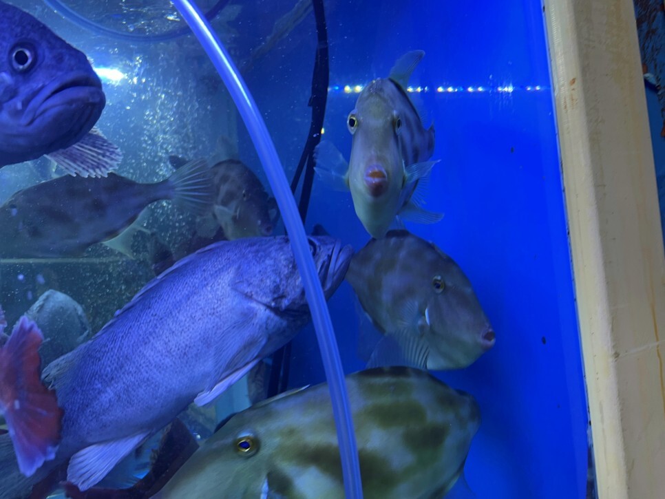 횟집에 갈 때 수조를 유심히 보는 편입니다. 수조의 상태가 곧 그 횟집의 얼굴이라고 생각해요. 이 횟집의 얼굴은 깨끗한 편이네요.