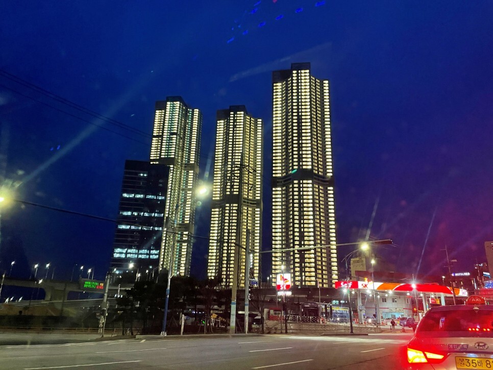 오늘따라 주인 할머니의 친근한 말씀이 인상적입니다. 급한 마음에 택시를 타고 달려가 봅니다. 송도의 새로운 랜드마크로 떠오르는 아파트가 완공이 되어 마무리 중인가 봅니다. 반짝이는 불빛이 참 밝네요. 아마 잠시 후 회를 만나면 저의 눈도 저렇게 반짝이겠죠?