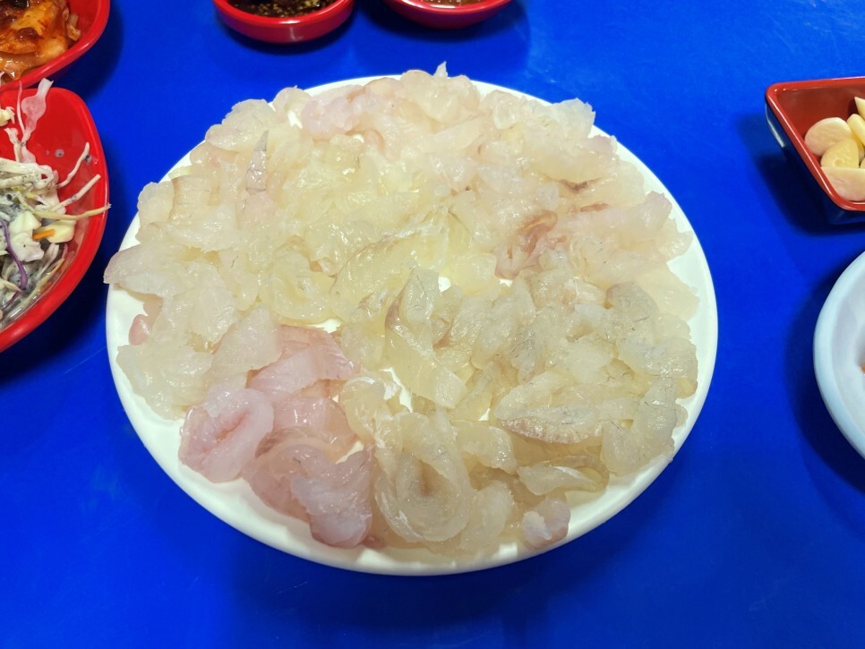 회는 여러 가지를 섞어 줍니다. 쥐치, 우럭 등 회가 잡힐 때마다 회의 종류가 달라지는 것도 매력이죠.
