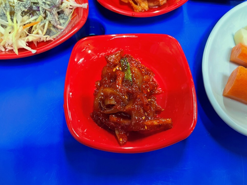 오징어젓갈도 직접 무쳐냈다고 합니다. 무말랭이와 잘 어우러진 젓갈 참 반갑습니다.