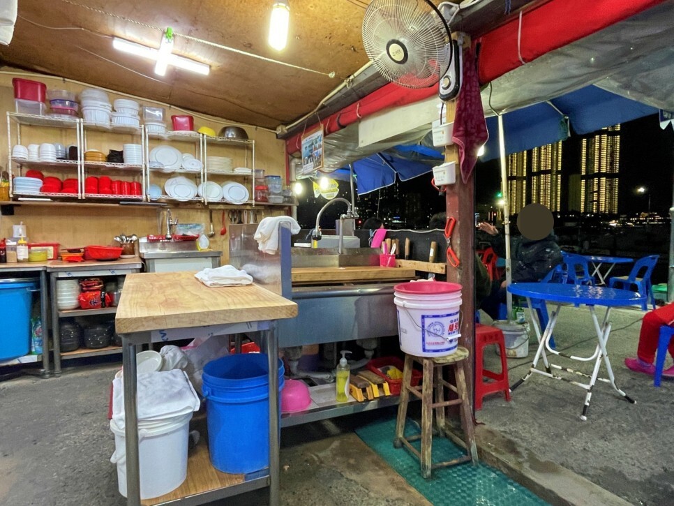 주방은 오픈형 주방입니다. 포장마차지만 깔끔하게 잘 관리되고 있는 모습이네요.