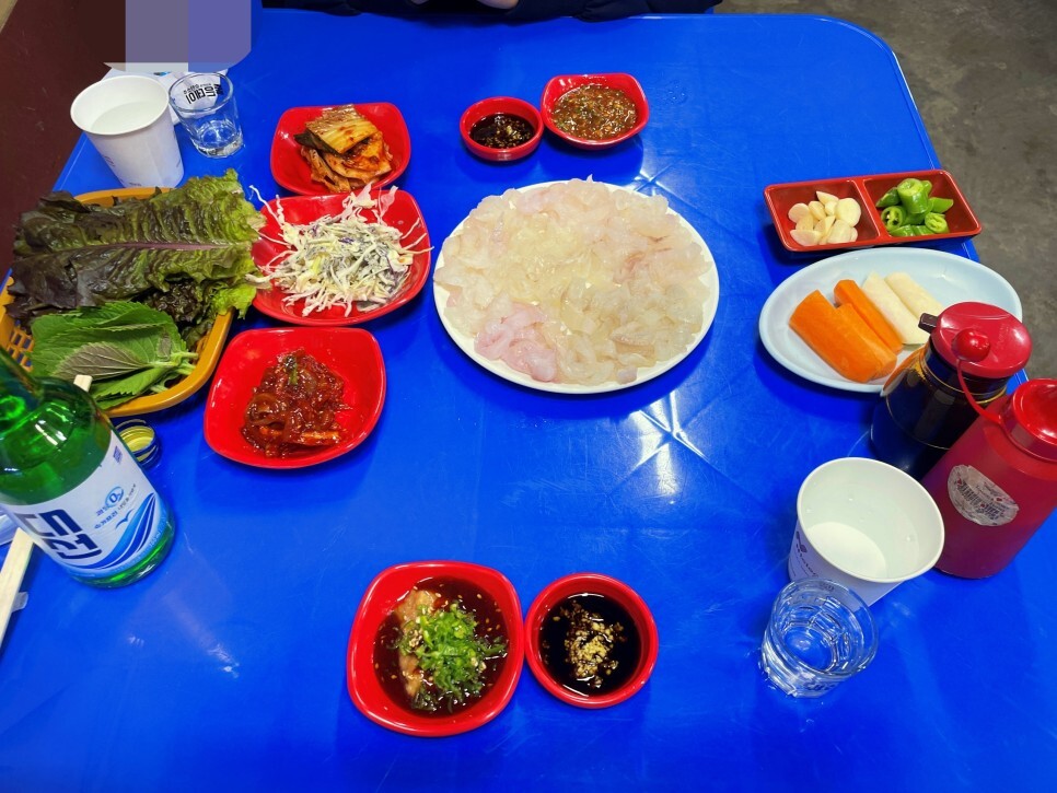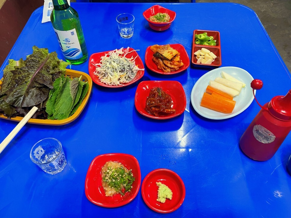 쫄깃한 회 한 점을 입에 넣어서 맛보면 씹을수록 부드럽고 고소한 맛이 올라옵니다. 맨입에 먹던 쌈을 싸먹던 아무튼 너무 맛있어요. 단출한 반찬들 역시 하나하나 빠질 것 없는 맛입니다.