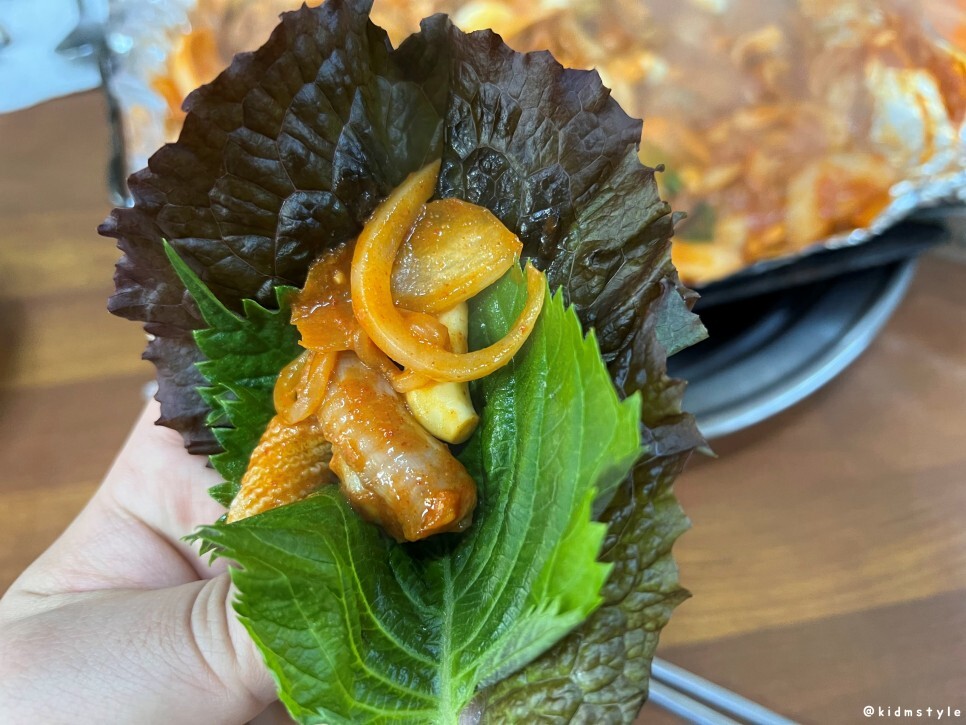 상추, 깻잎에 싸서 먹어본다. 소주 2잔을 부르는 맛.