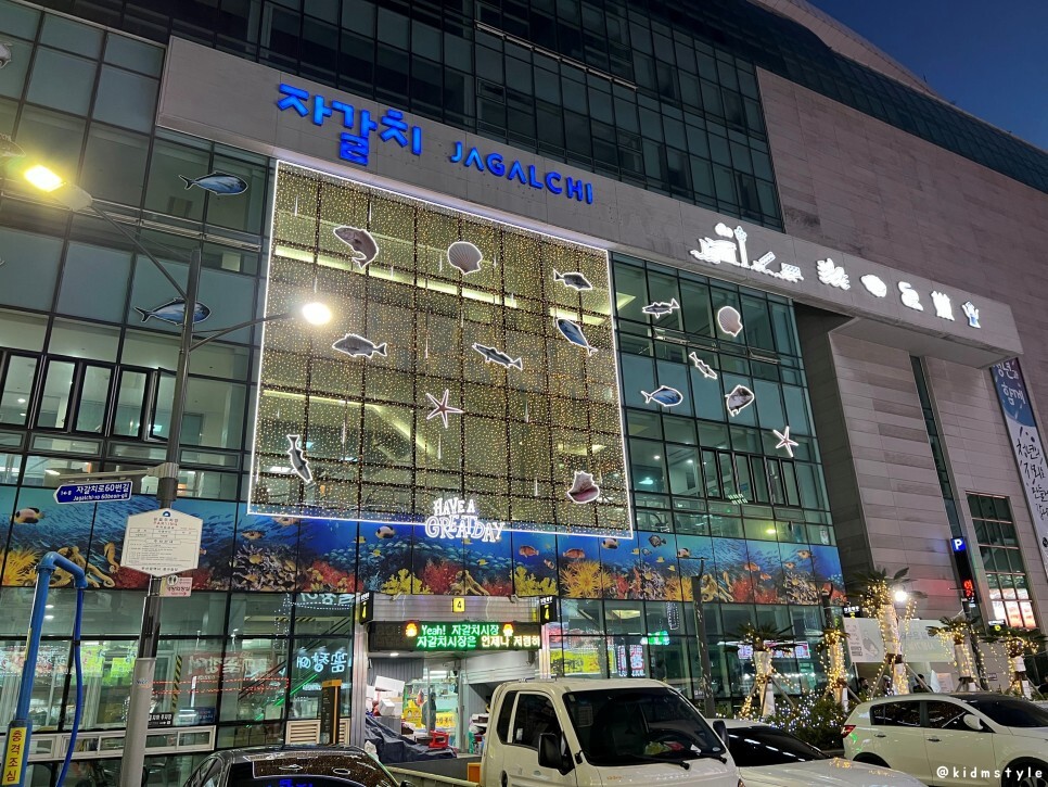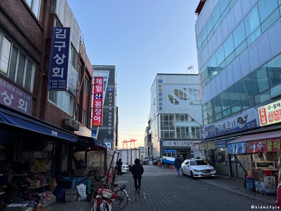 1월의 자갈치 시장 건물은 아직 연말의 분위기를 안고 있다.