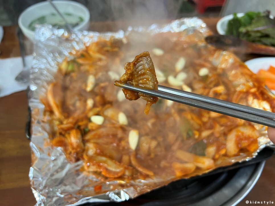 다 익었으니 먹어도 좋다는 이야기에 바로 젓가락이 반응한다. 빛의 속도로 한 점 맛을 보니 맛있다.