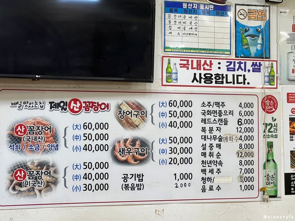 메뉴판을 찍어본다. 국내산과 미국산은 각각 만 원씩 차이가 나는데 우리는 가성비로 미국산 소자 (30,000원)를 주문해 보았다. 새우 구이도 참 맛있을 것 같다. 둘이 가면 중자를 추천하는 데 소자를 주문한 이유는 이것을 먹고 양꼬치를 맛보고 갈 예정이기 때문이다.