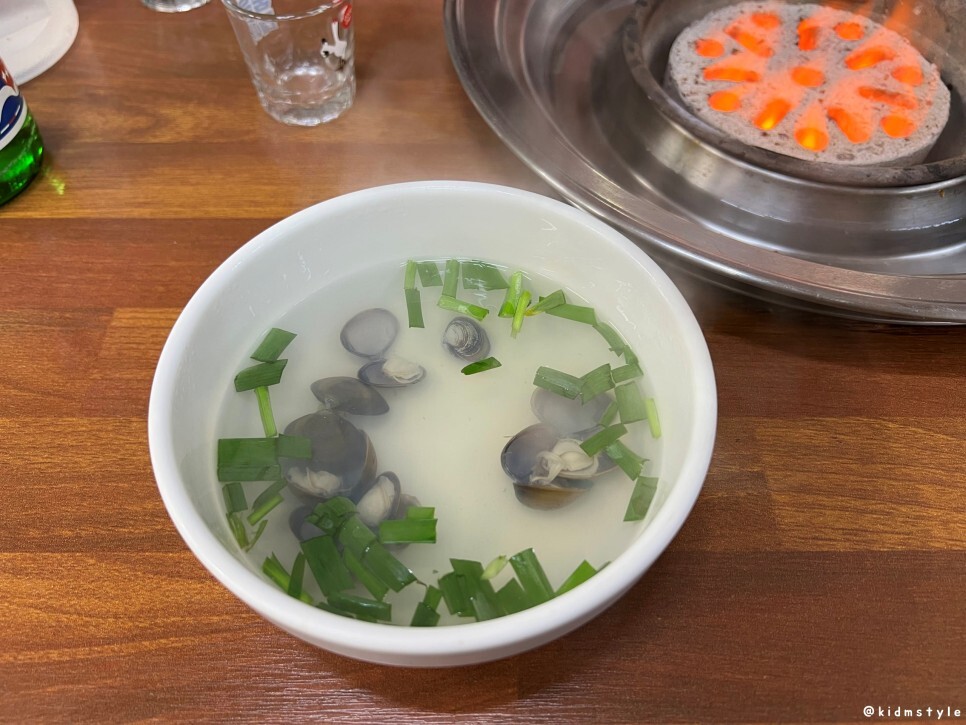 꼼장어를 맛보기 전에 재첩국 국물부터 마셔보자. 시원한 게 참 좋네.
